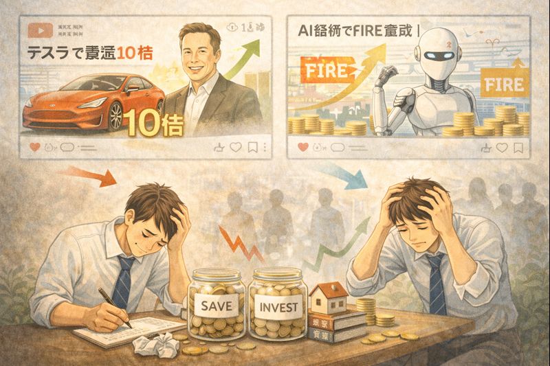 例えば「テスラで資産10倍」「AI銘柄でFIRE達成」など、